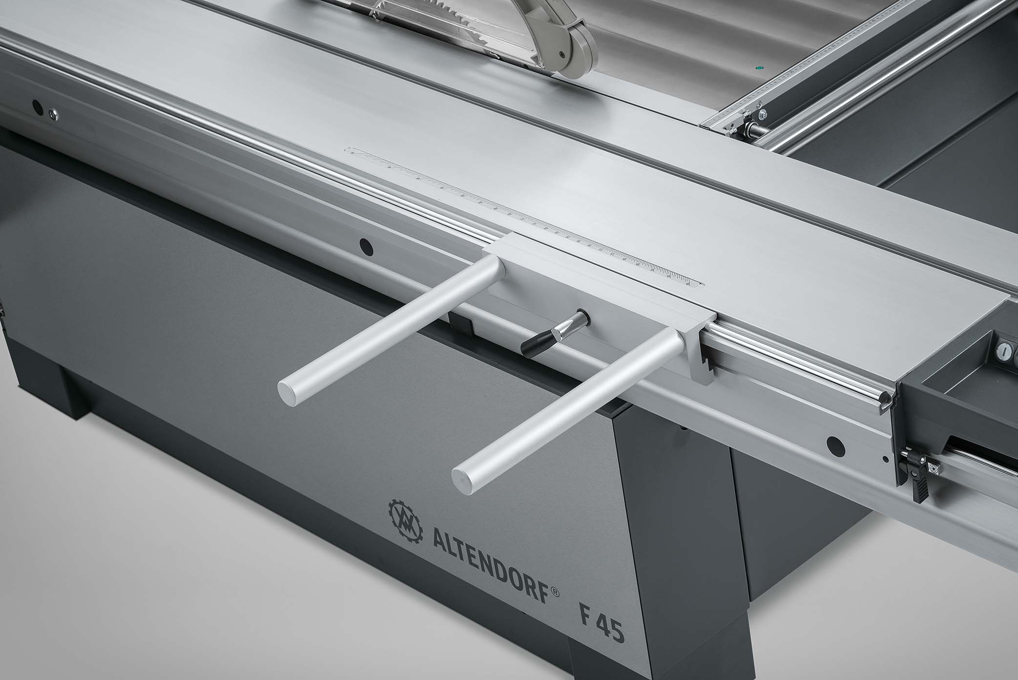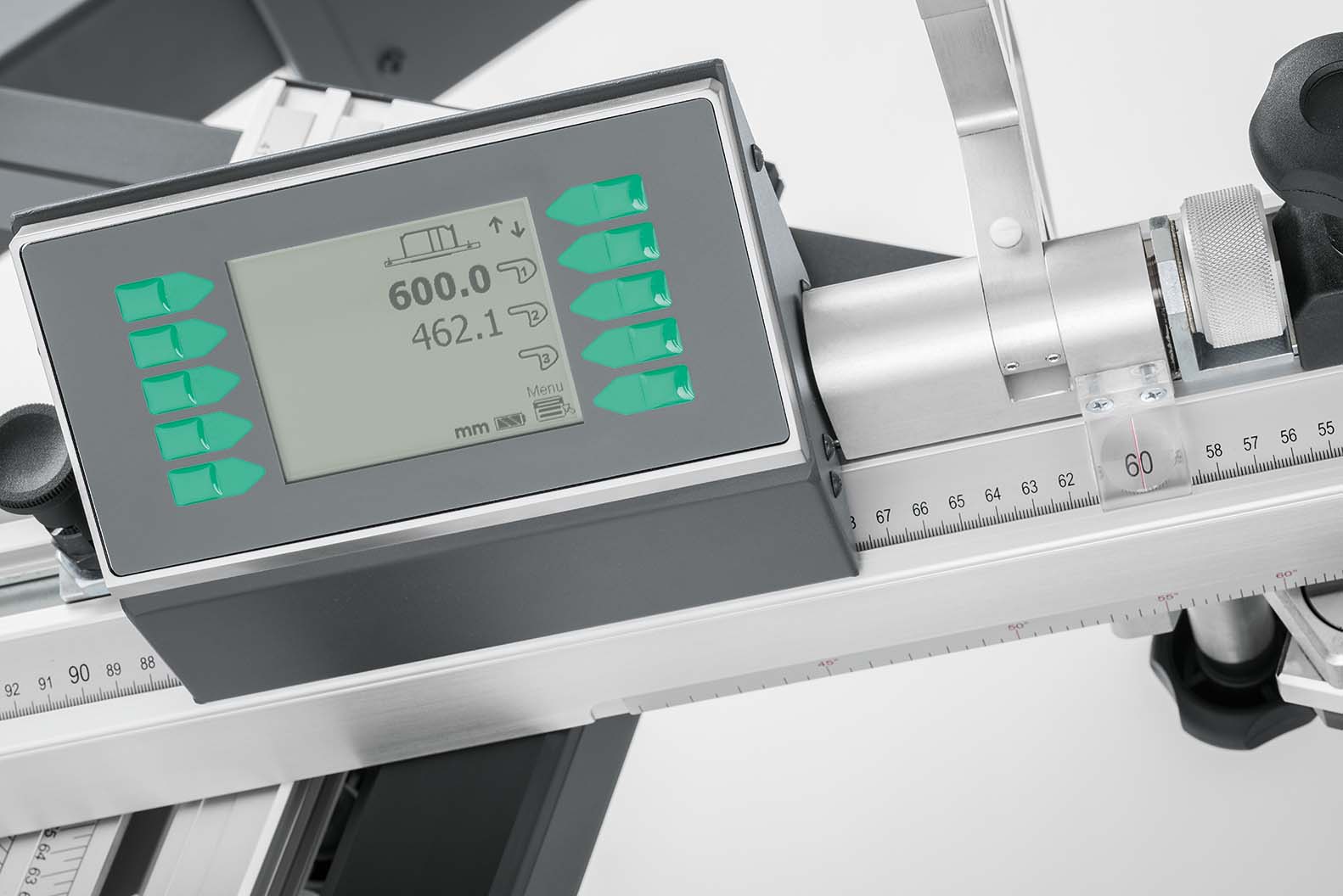 – Winkelanschlag mit fester 90° Position, manuell einstellbar über Maßskala bis 3.200 mm