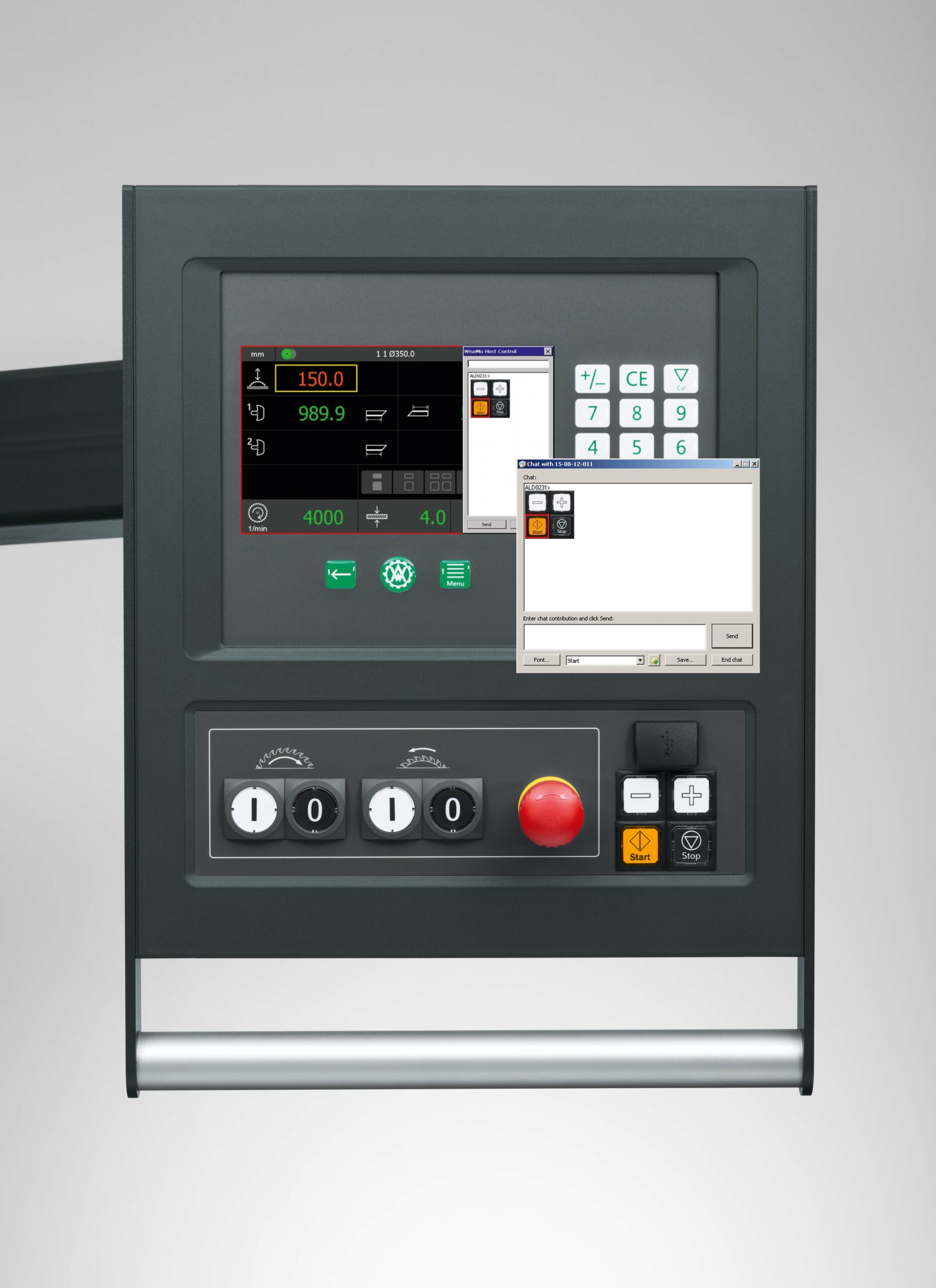 – Stufenlose Feinsteuerung der Achsen über +/- Tasten *