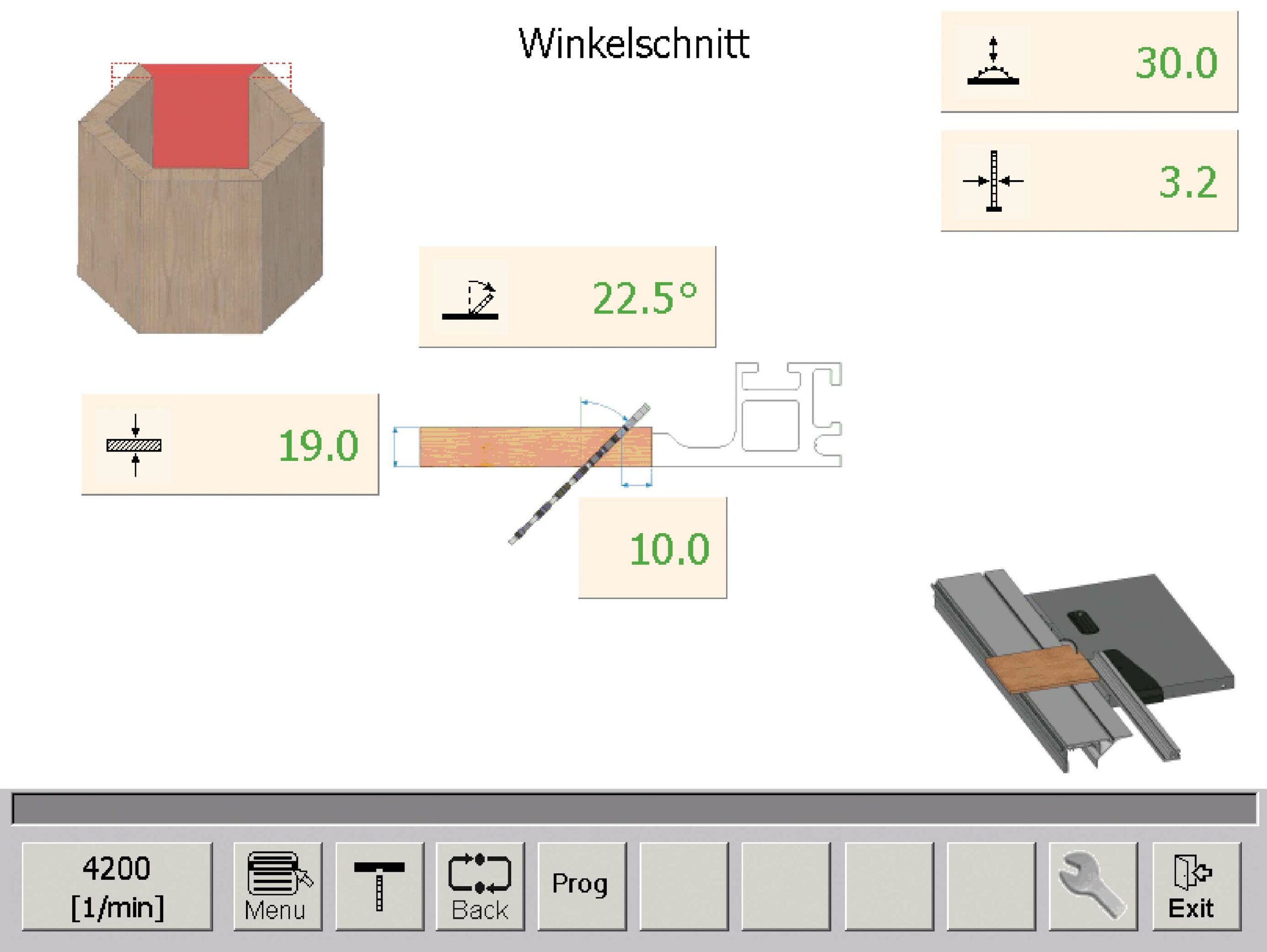 – Automatische Maßkorrektur am Parallelanschlag und Winkelanschlag bei Schwenkung des Sägeaggregats